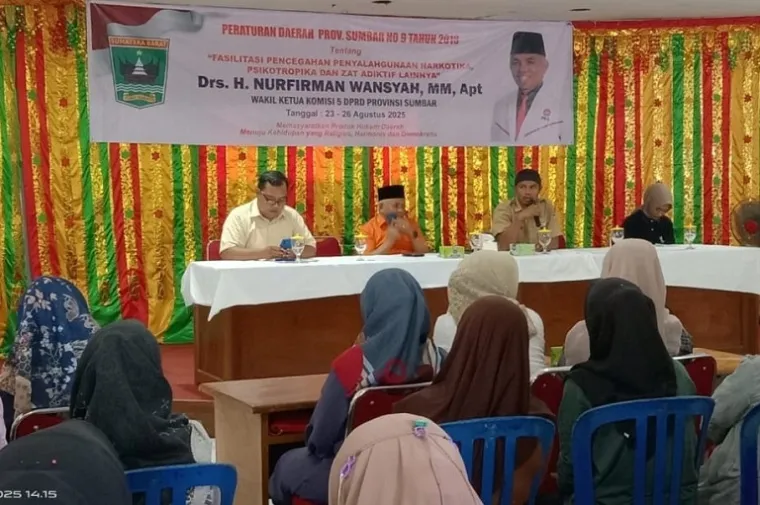 pelitasumbarnews.com- Wakil Ketua Komisi V DPRD Sumbar, Nurfirman Wansyah menggelar sosialisasi Peraturan Daerah (Perda) Nomor 9 Tahun 2018 tentang Fasilitasi Pencegahan Penyalahgunaan Narkotika, Psikotropika dan Zat Adiktif (NAPZA) di Wisma Umi Kalsum, Kecamatan Sungai Pagu, Kabupaten Solok Selatan, Senin (25/8).