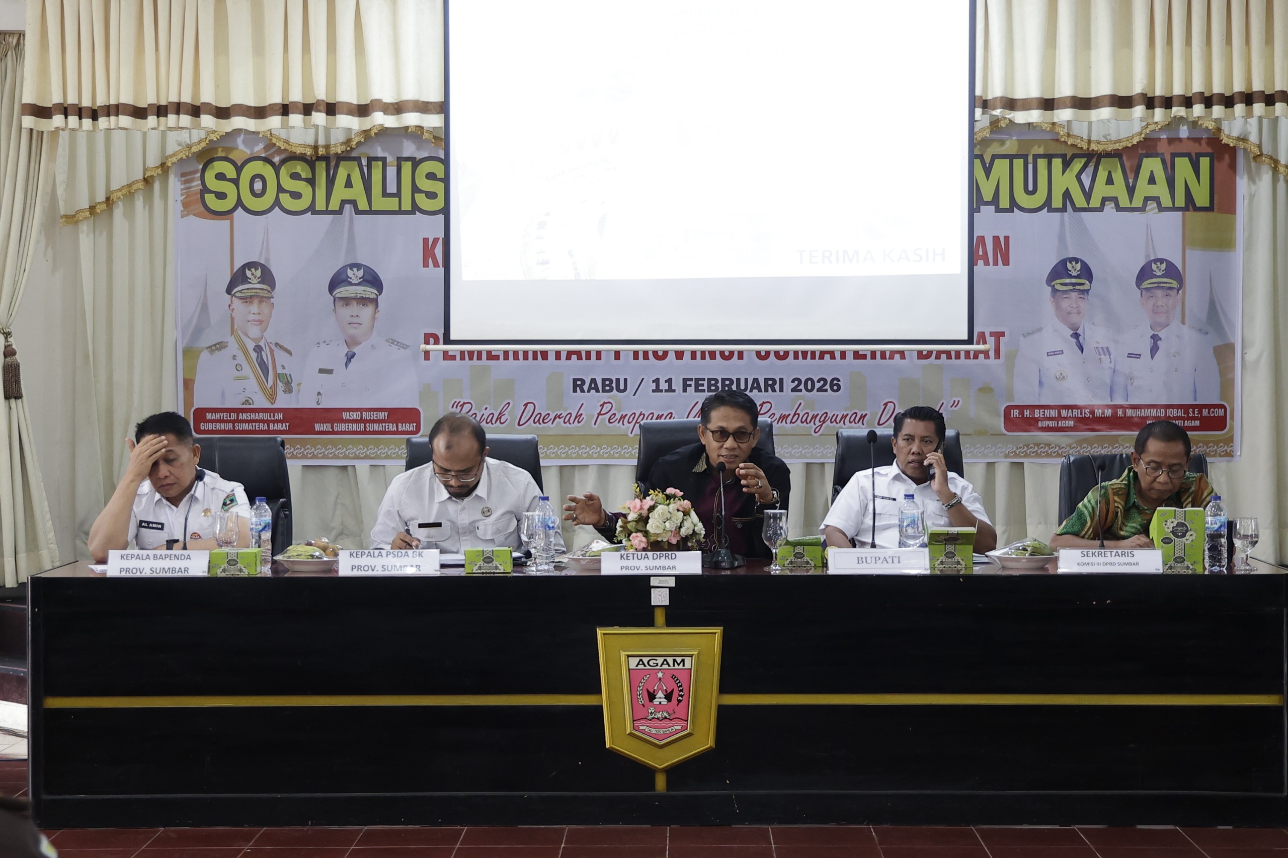 Setelah sebelumnya digelar di Pasaman Barat (Pasbar) dan Pesisir Selatan (Pessel), pada Selasa (11/2), sosialisasi tersebut berlanjut dilaksanakan di Kabupaten Agam. Sosialisasi ini dihadiri langsung oleh Wakil Ketua DPRD Sumbar, Evi Yandri Rajo Budiman, serta Kepala Badan Pendapatan Daerah (Bapenda) Sumbar, Al Amin.